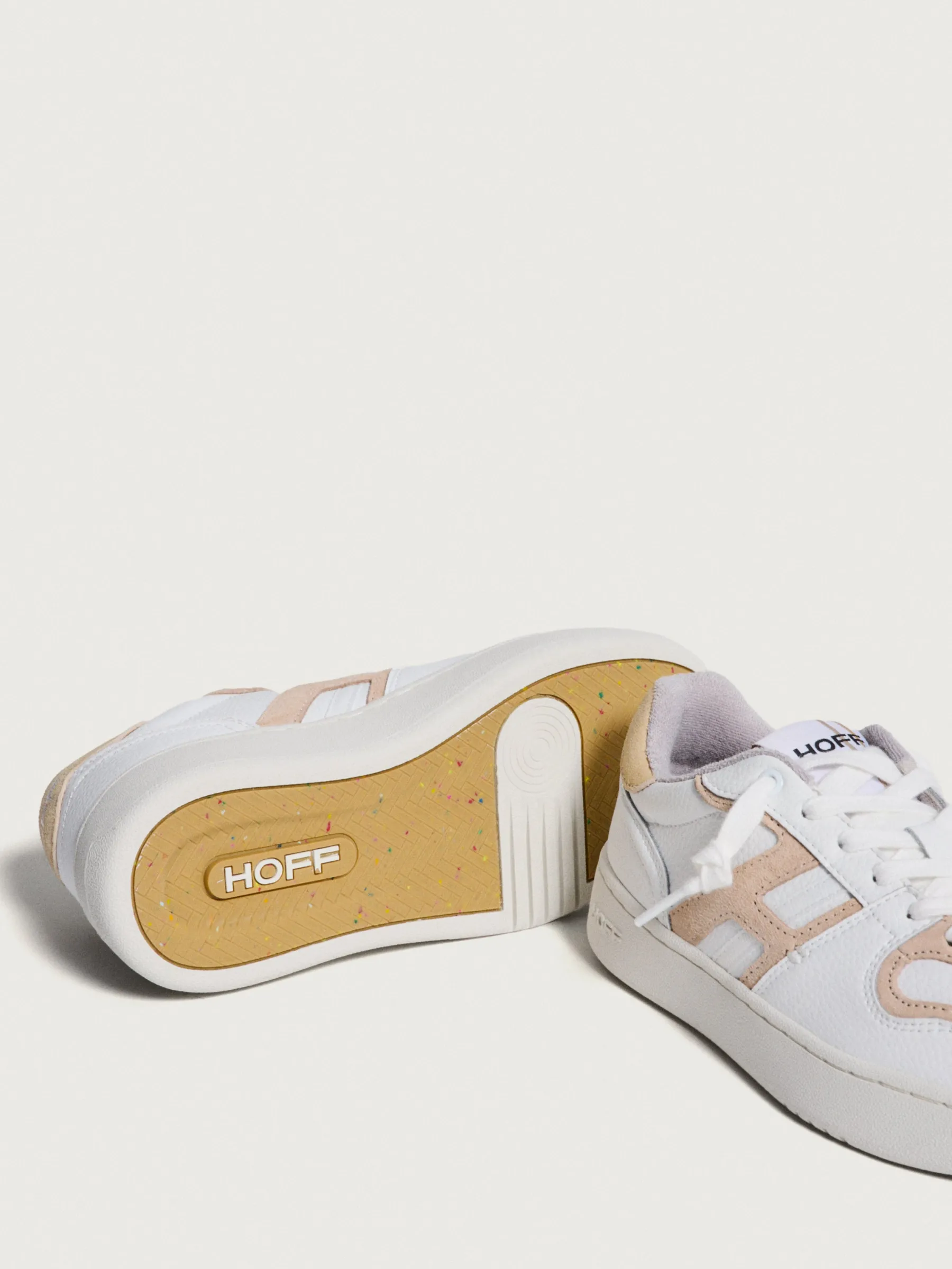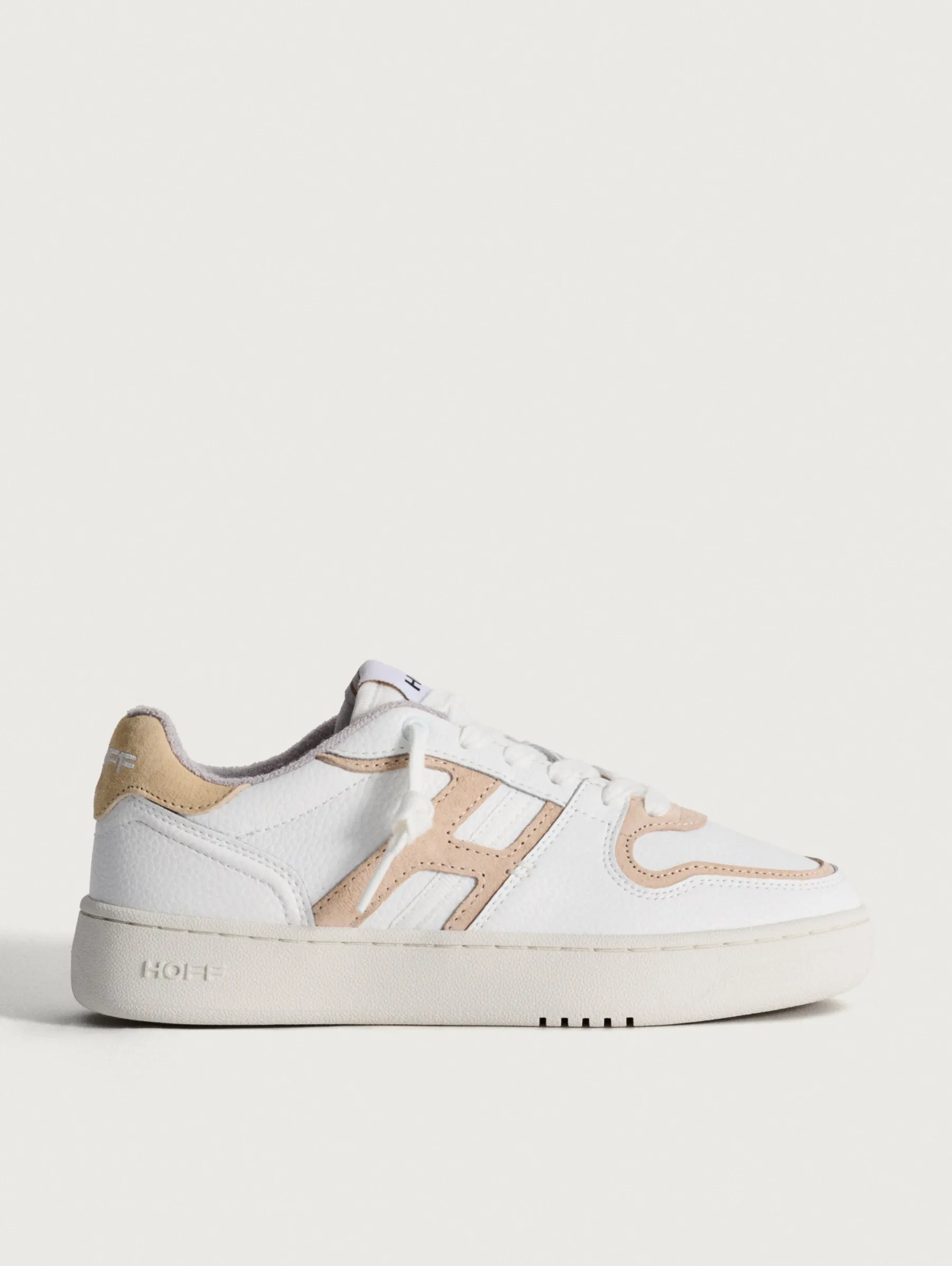 Inspiré de la saison CONVENT GARDEN, ce modèle allie praticité et modernité dans son design sportif. Son style bamba-skate se distingue par ses détails en cuir unicolore contrastant avec le ton camel sur les côtés et à l’avant. Ces baskets sont conçues pour une marche confortable grâce à leur semelle intérieure en mousse à mémoire de forme. La semelle extérieure en caoutchouc recyclé imite la robustesse des pavés de la saison et présente des détails marbrés. Le logo brodé à l’arrière ajoute la signature de la marque. Parfaites pour une polyvalence qui vous permet de les porter avec n’importe quel look, qu’il s’agisse d’une jupe ou d’un jean.Style: Baskets Bamba.Hauteur de la semelle: 3,5 cm.