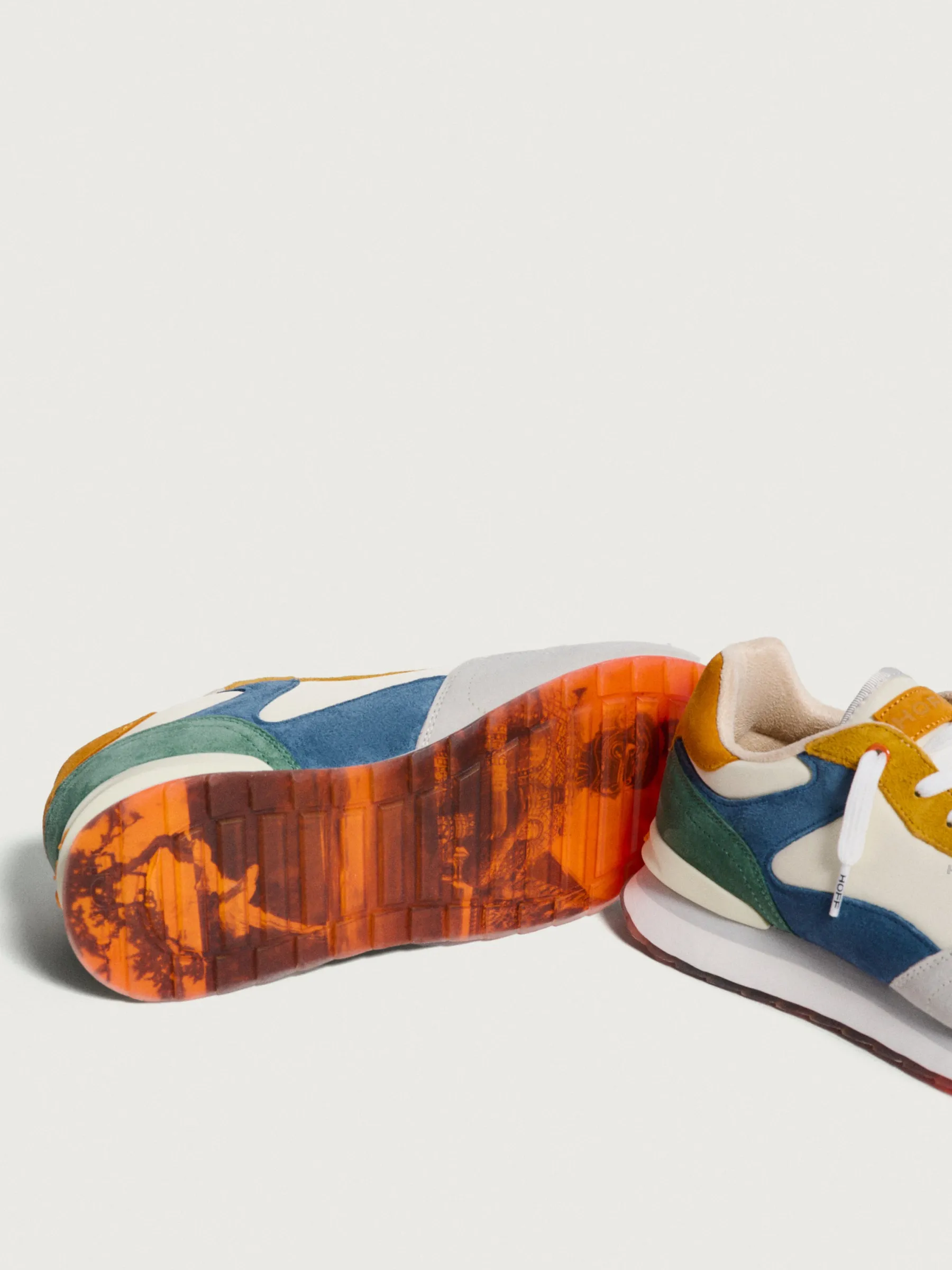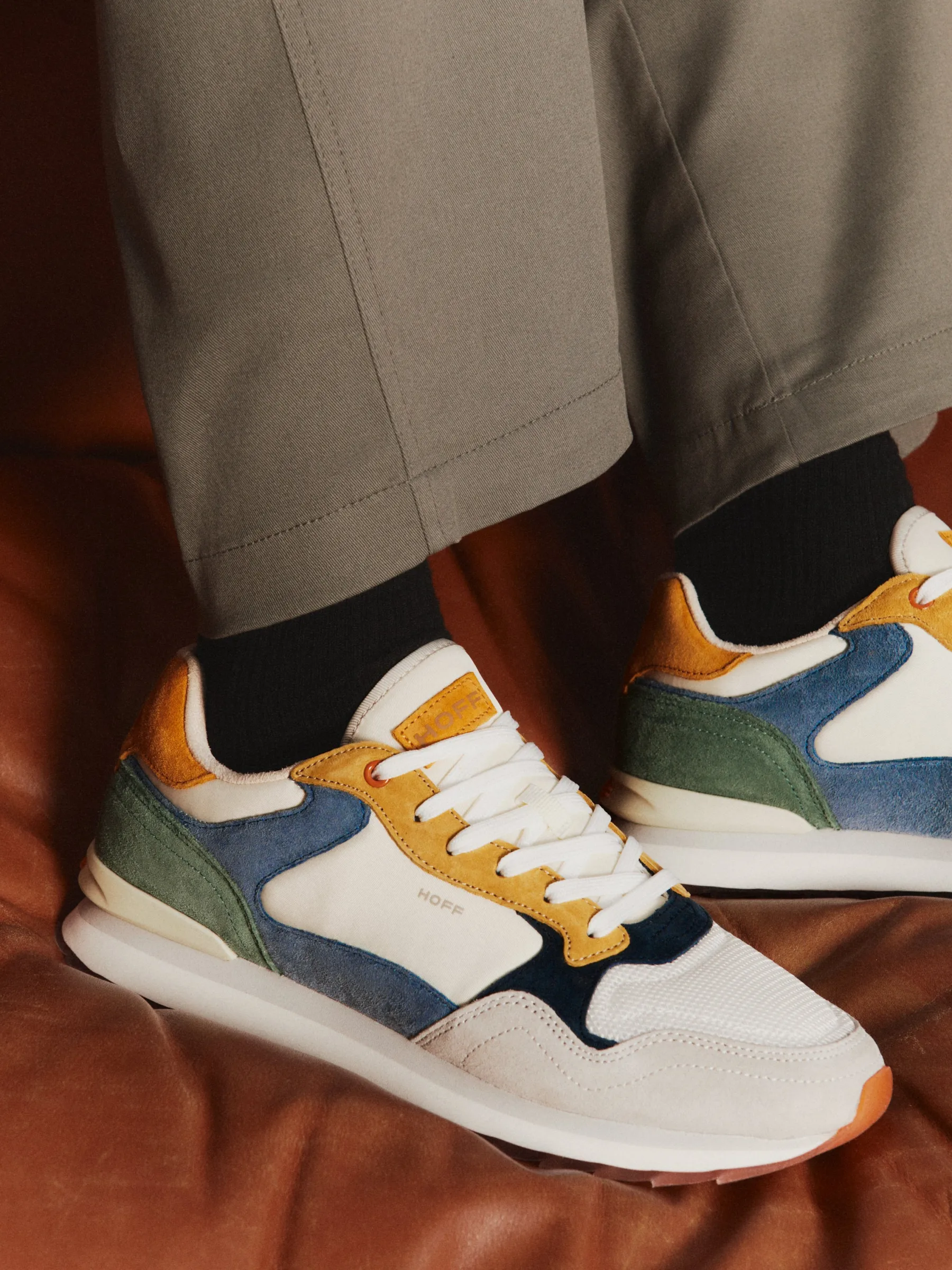 BANGKOK est l’une de nos villes préférées. Ces baskets au style rétro sont la combinaison parfaite. Le mélange de matières en fait une pièce polyvalente, avec un design signature pour vos looks. Elles ont un effet matelassé sur le devant du tissu et une dose de confort grâce à la semelle intérieure Memory-Foam. Ne manquez pas l’essence de chaque sneaker dans la semelle et rehaussez votre streetwear.