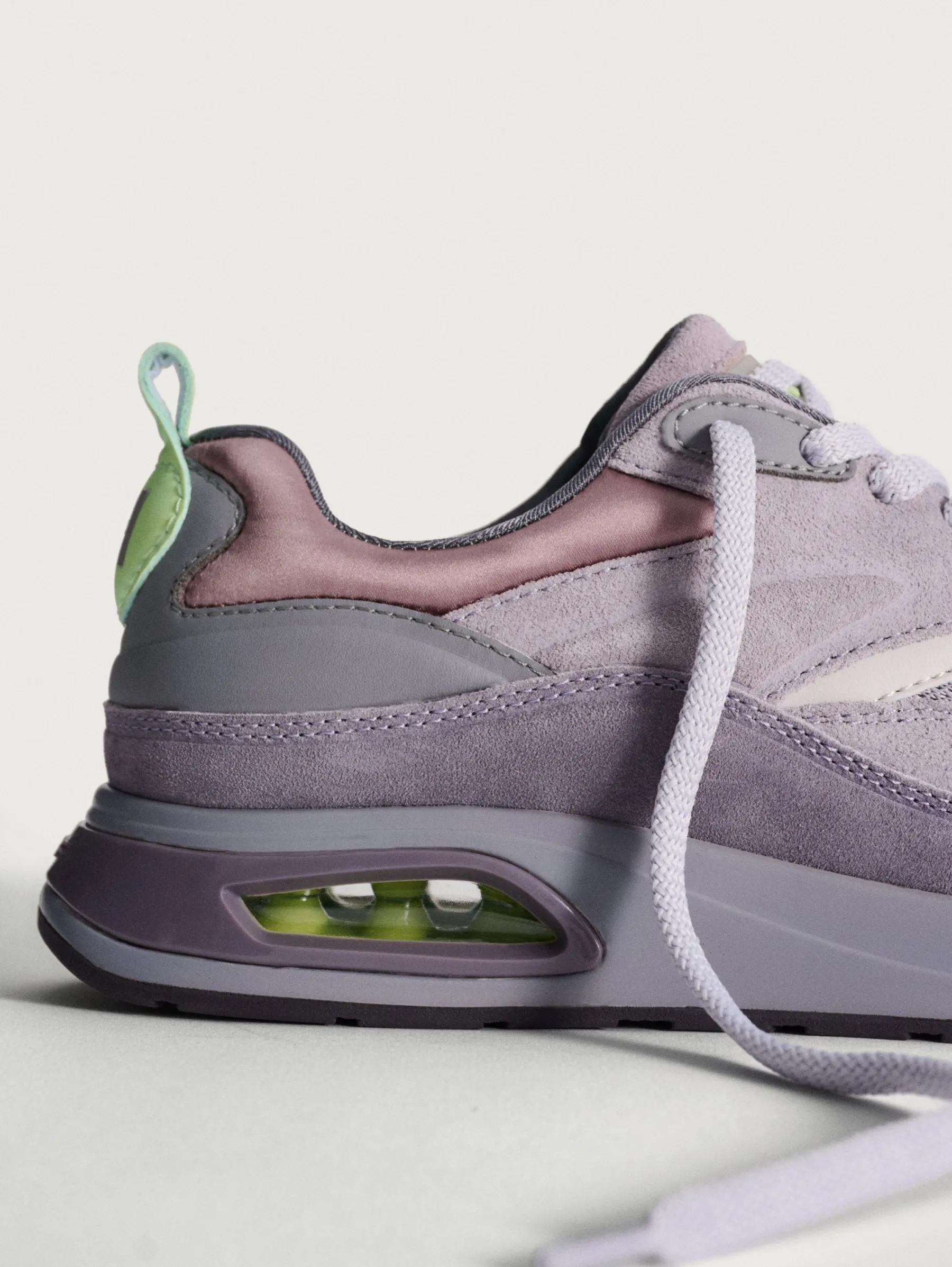 Aussi confortables qu’uniques en design, les baskets GUELL intègrent une douce chambre à air visible, parfaite pour absorber les chocs du quotidien. La combinaison de cuir, de nylon et de textile crée une silhouette élégante qui s’intègre à tous les styles. Avec la semelle intérieure en Memory-Foam®, vous profiterez d’un confort tout au long de la journée. Le cuir suédé dans des tons violets apporte une allure élégante et polyvalente. Idéal pour un brunch entre amies ou une journée au travail.