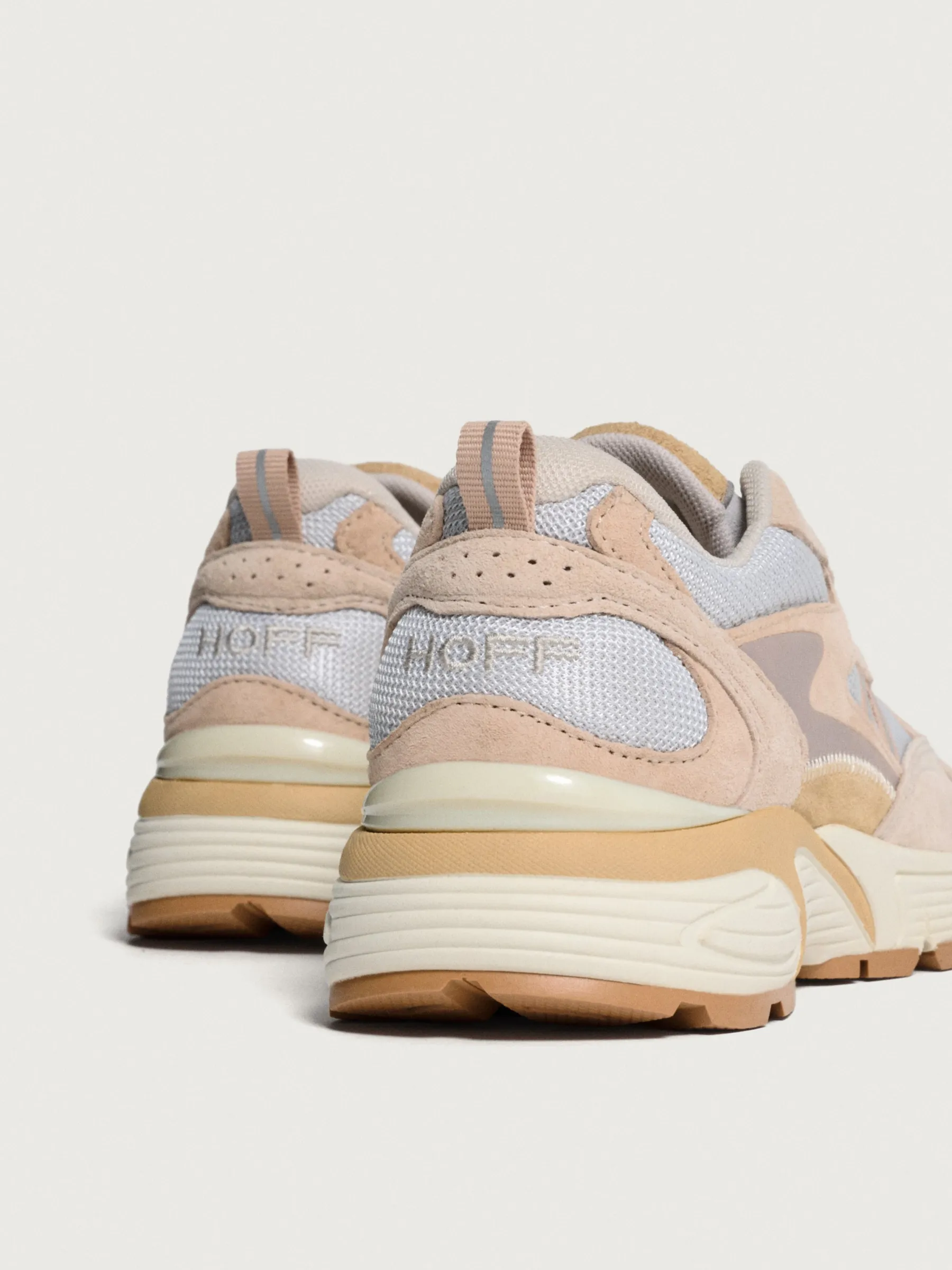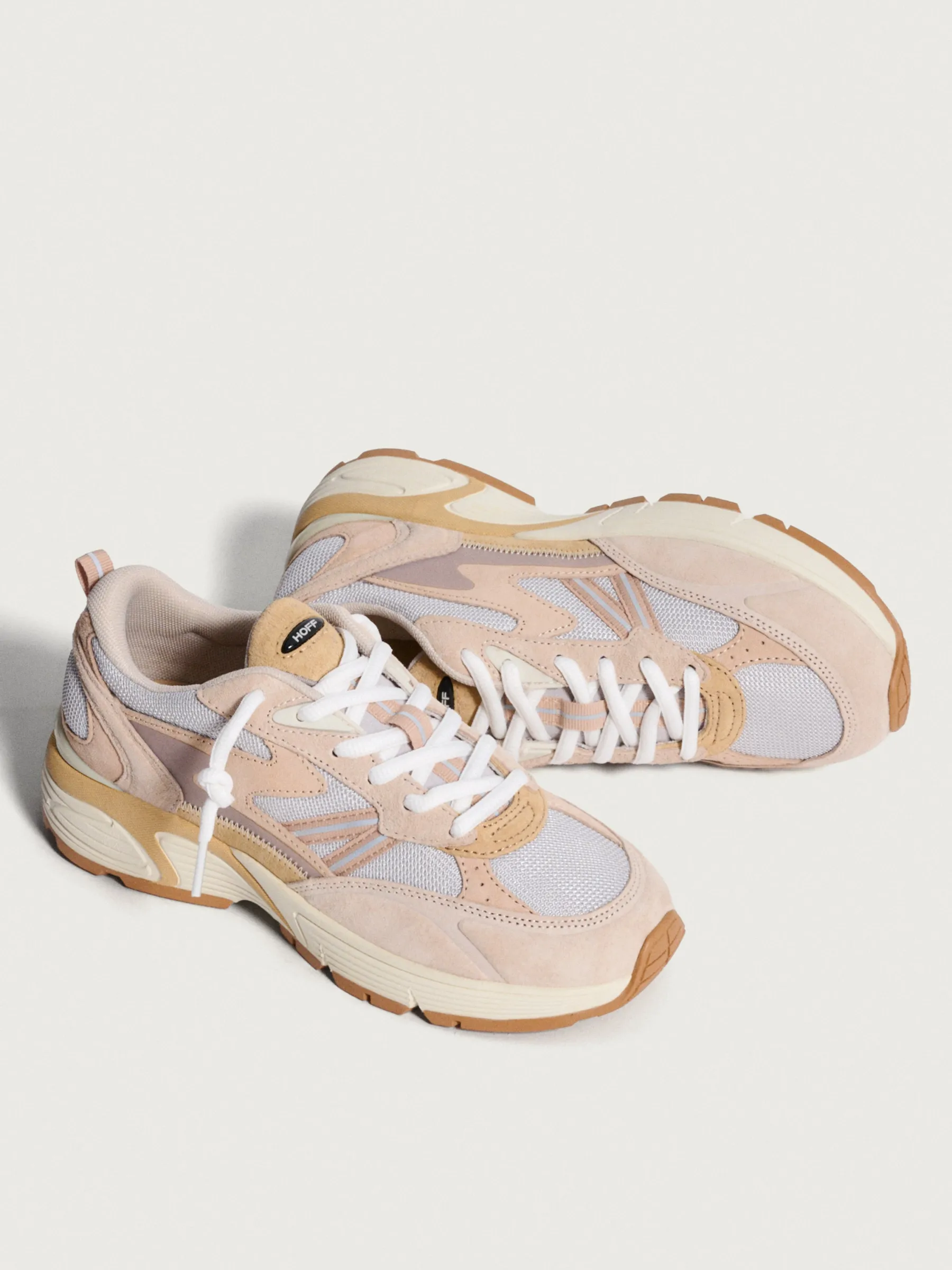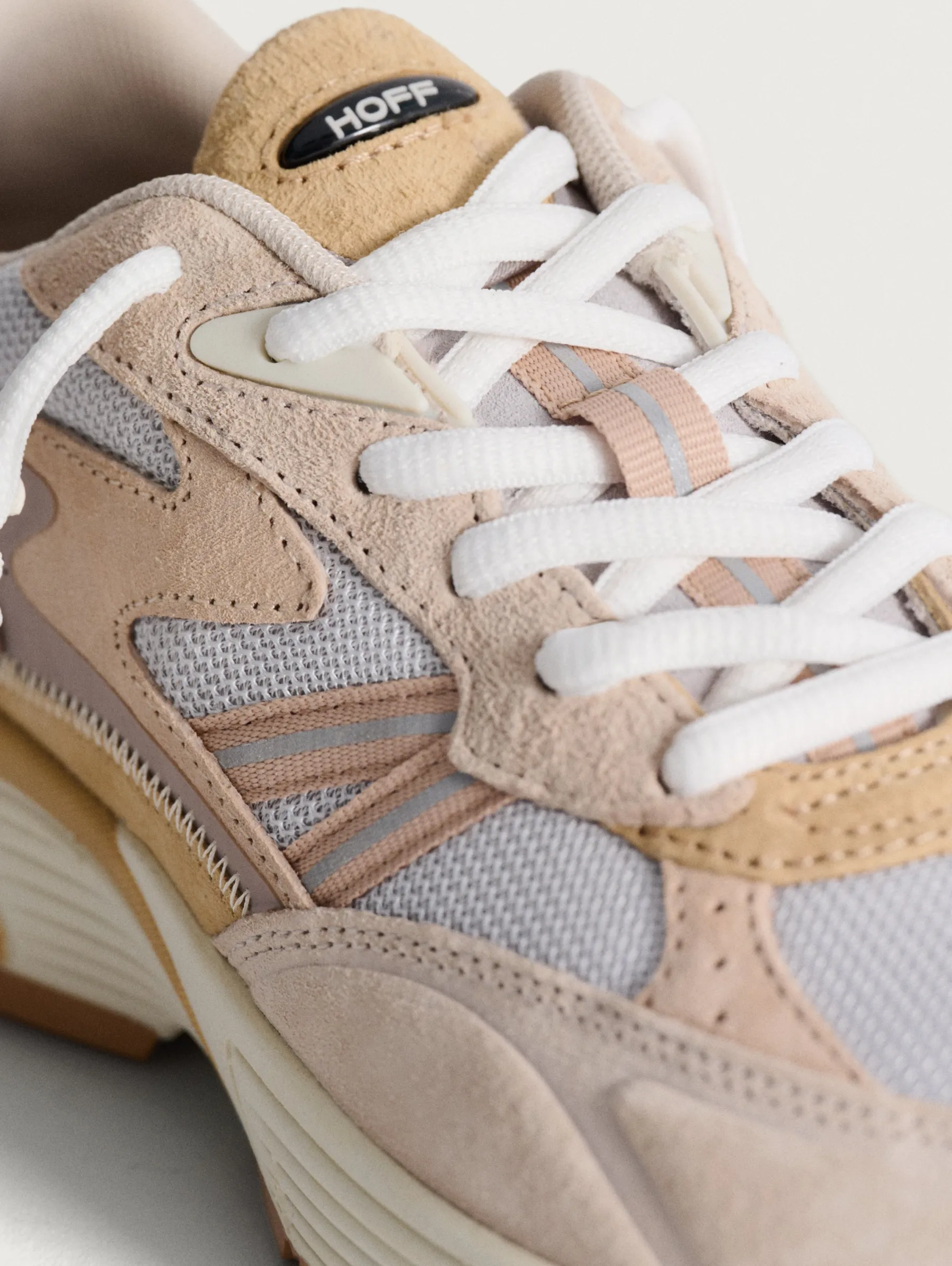 Inspirées de CALIFORNIA, ces chaussures de course de la collection STATE combinent à la perfection des matériaux tels que le daim, la maille et les empiècements caoutchoutés. Leur design unique est mis en valeur par la combinaison équilibrée de tons camel, os et gris, parfaits pour les looks neutres et classiques. La semelle intérieure en mousse à mémoire de forme en fait le compagnon idéal pour les longues journées ou le bureau. La semelle épaisse en caoutchouc présente des détails moutarde qui complètent la maille blanche sur les côtés et la tige, ainsi que des détails réfléchissants, un accent caoutchouté et un logo brodé distinctif. Un favori du style de la rue.Style: Baskets de course avec semelle épaisse.Hauteur de la semelle: 4 cm