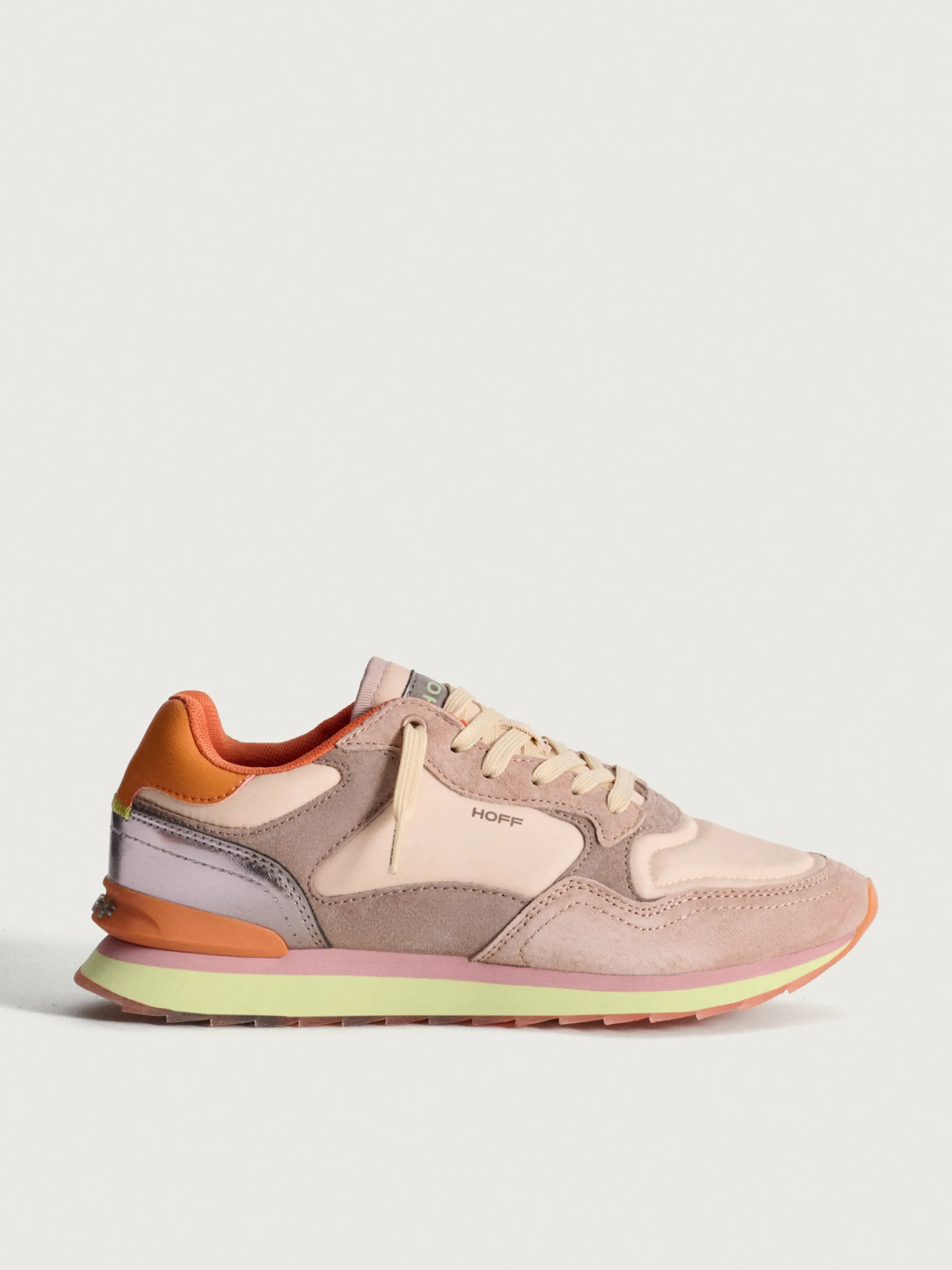 Les baskets Cagliari sont originales et modernes, avec une combinaison de tons crème et kaki qui contrastent avec des détails argentés et orange vifs. Sa semelle gaufrée présente une ligne rose et jaune pastel, ajoutant une touche distinctive à son design. Fabriquées avec du cuir, du nylon et une touche de synthétique, ces baskets sont une option polyvalente pour votre style. La technologie de la semelle intérieure Memory Foam (R) assure un confort toute la journée, tandis que la doublure textile offre une douceur près de la peau. Associez-les avec un jean et un t-shirt basique pour un look décontracté et moderne.