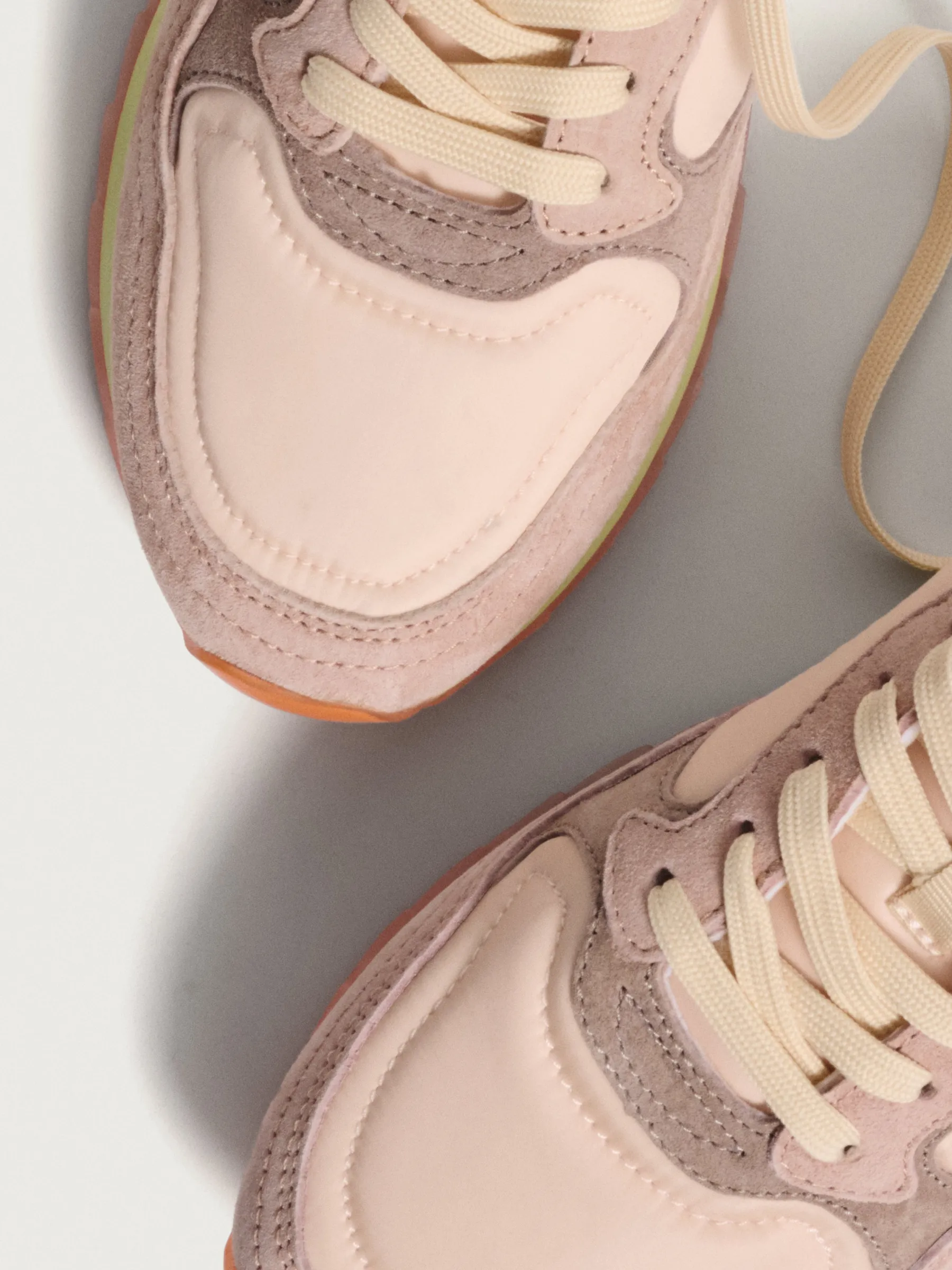 Les baskets Cagliari sont originales et modernes, avec une combinaison de tons crème et kaki qui contrastent avec des d…