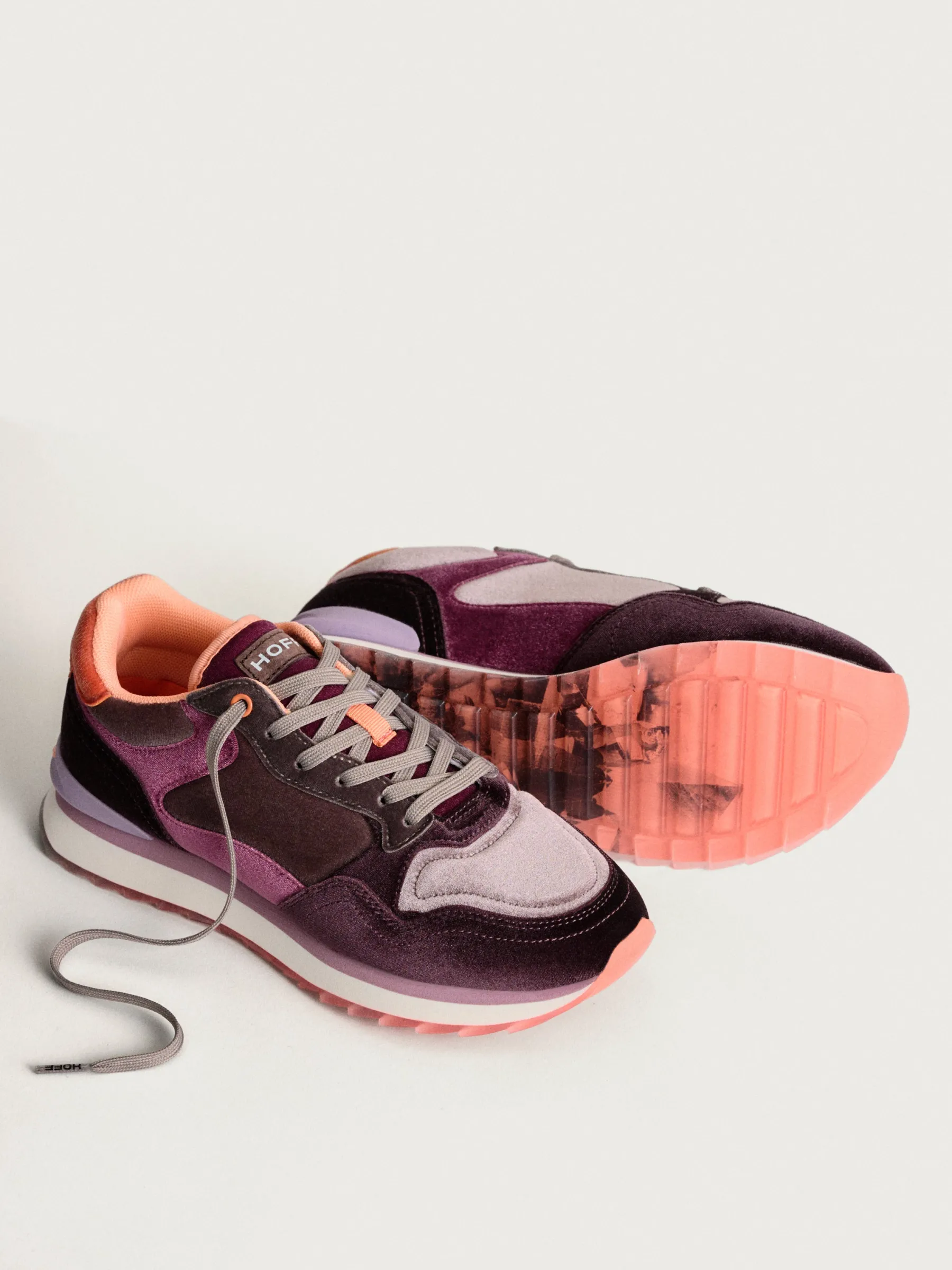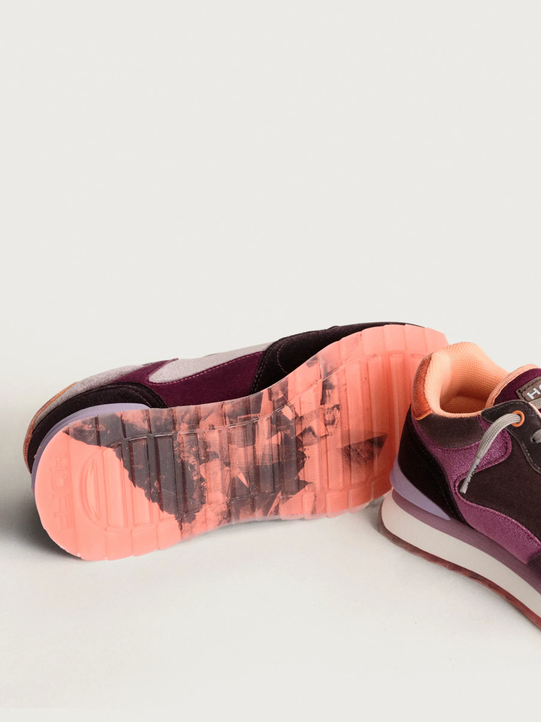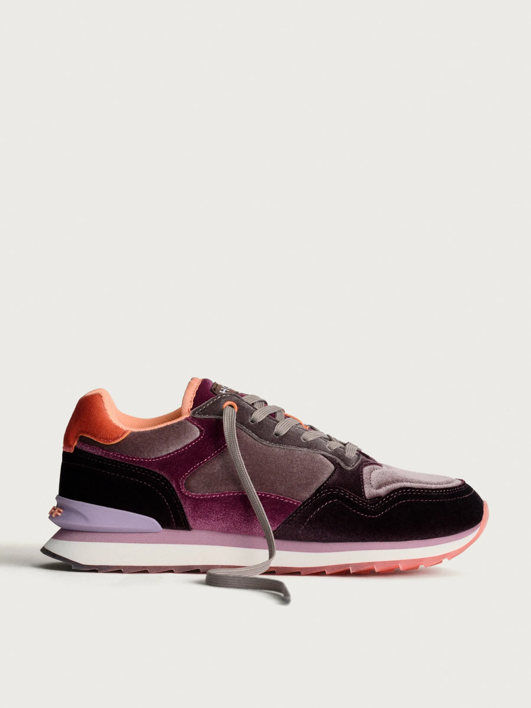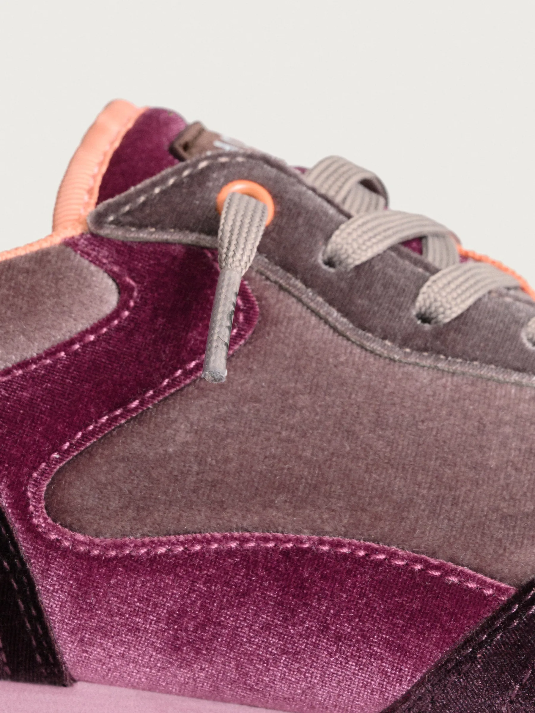La chaussure AMETHIST se distingue par sa silhouette élégante, soulignée de cuir et de détails en nylon. Ce qui ressort le plus dans ce modèle, c’est le velours, qui les enveloppe dans des tons d’améthyste, offrant une sensation de luxe et de sophistication. Ce détail en velours rehausse non seulement l’esthétique visuelle, mais apporte également une texture douce au toucher.