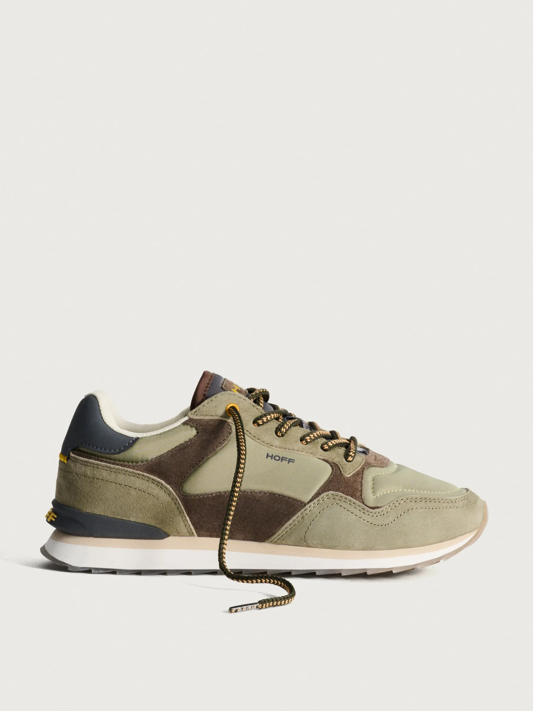 Les baskets Bremen vous transportent dans la ville allemande avec leurs différentes nuances de vert contrastées avec le bleu. Ces baskets élégantes et modernes sont idéales aussi bien pour travailler que pour sortir entre amis le week-end. Sa composition en cuir et nylon garantit durabilité et style. La semelle ergonomique et la semelle intérieure Memory-Foam(R) offrent un confort toute la journée. Combinez-les avec un chino et une chemise en coton pour un look polyvalent et sophistiqué.